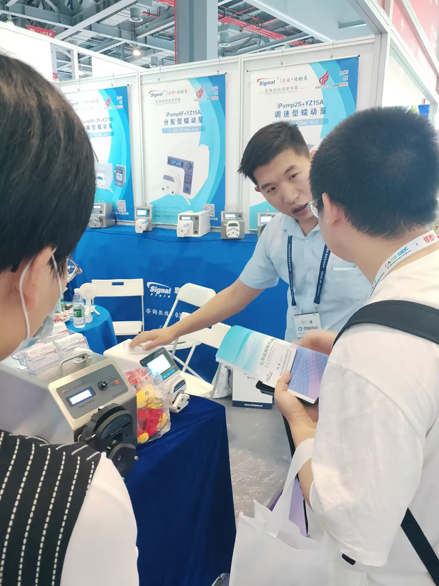 本屆展會為期3天,總展覽面積13萬平方米,吸引了來自海內外20多個地方和地區體外診斷上、中、下游全產業鏈的1300余家企業參展,參展產品涵蓋生物化學、免疫、分子與核酸、微生物、上游原材料等領域。保定思諾流體科技有限公司也受邀到場,攜帶創新研發新品蠕動泵,和參展觀眾就行業發展、創新理念、外動態等進行全方位、多角度的交流和探討。